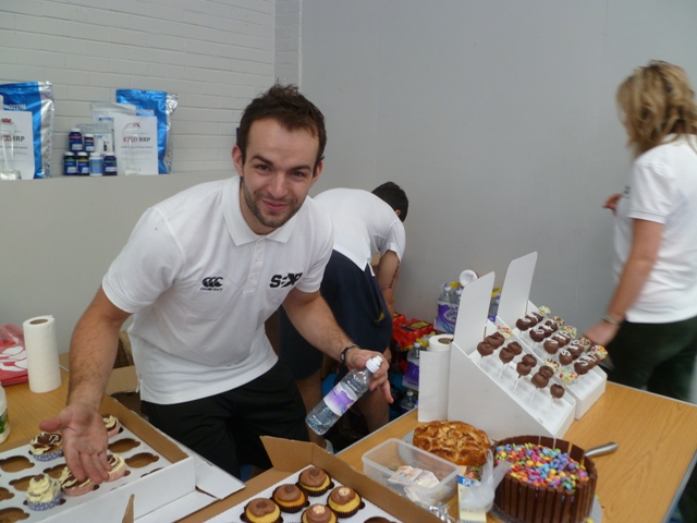 Karl showing off the selection of protein cakes