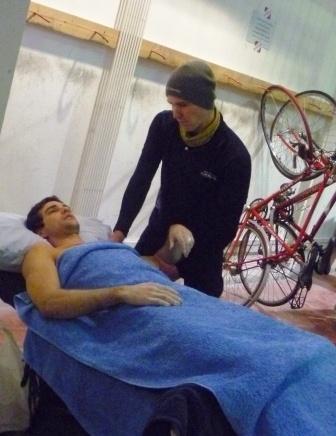 Jordan Buys receiving post-contest soft tissue therapy and missing his prize being awarded!! Thankfully Naomi was on hand to collect it for him.